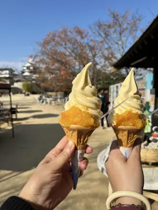 The mikan ice cream 🍦 at the base of the castle is delicious 😋