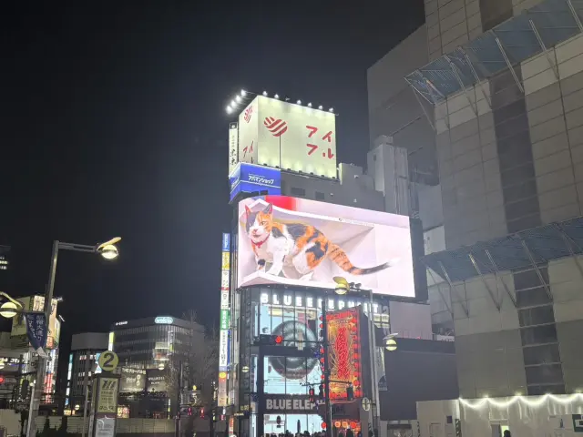There's this cat that pops up on the big screen at the intersection heading toward Kabukicho from the East Exit of Shinjuku Station. It's a calico, which is a classic Japanese cat, and it's super cute! When I saw it, the cat was happily purring, but other times I've seen it playing around, knocking over cups and stuff for fun. Waiting at the crosswalk is way more enjoyable now.
