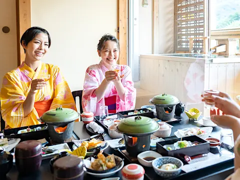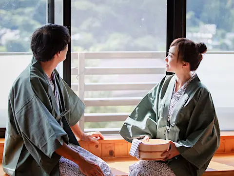 Just a 30-minute drive from Osaka City! Recharge in this nature-hugged inn known for luxe hot springs, and tasty seasonal fare.