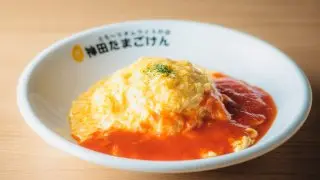 The fragrant rice with the half-cooked eggs is so good! The eggs are soft and creamy, and when you take a bite with the hamburger steak, the flavors go perfectly together. The pickled veggies help cut through the greasiness, too.