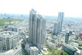 There are quite a few locals here during the day. If you follow the path and climb a few steps, you'll reach a platform where you can see the tall skyscrapers of Shinjuku. The lush greenery feels really nice.