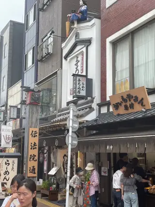 雷門をくぐり仲見世通りを進んで一番奥、浅草寺の宝蔵門手前の店は常に多くの観光客で賑わう。