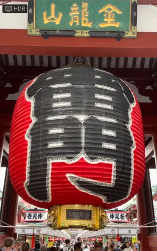 「雷門」に吊るされた幅3.3m・高さ3.9mもある大提灯は、人気の撮影スポットとなっている。