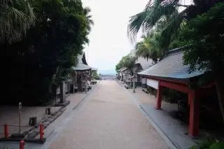 島中に亜熱帯植物の森が広がっており、神社にいながら南国にいるような気分も味わえる。