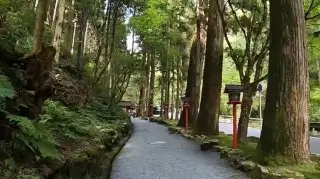 天狗伝説の残る霊峰・鞍馬山に鎮座する唯一の神社で、「鞍馬寺」への参道途中に位置する。