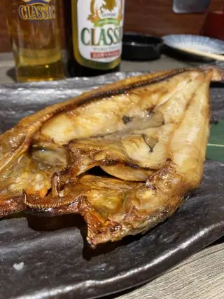 お酒に合う一品料理も魅力的で、炭火焼で仕上げた特大のシマホッケが名物のひとつ。