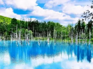 北海道の絶景スポットとして、不思議なほど美しい青い水面に立ち枯れたカラマツと、その周囲の豊かな自然が織りなす絶景が有名な観光スポットだ。