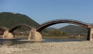世界的にも珍しい木造のアーチ橋で、他では類を見ない構造を持つ。