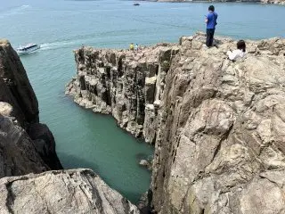 遊覧船に乗って「大池」を海から見上げて、大きな岩壁に囲まれる圧迫感と岩壁の高さを感じるのもお勧めだ。