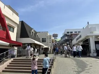 潮風を感じながら、食べ歩きを楽しめるのがこの商店街の魅力だ。