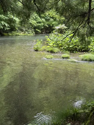 付近の木橋から見渡したり、川辺まで降りて流れを間近で見たりもできる。