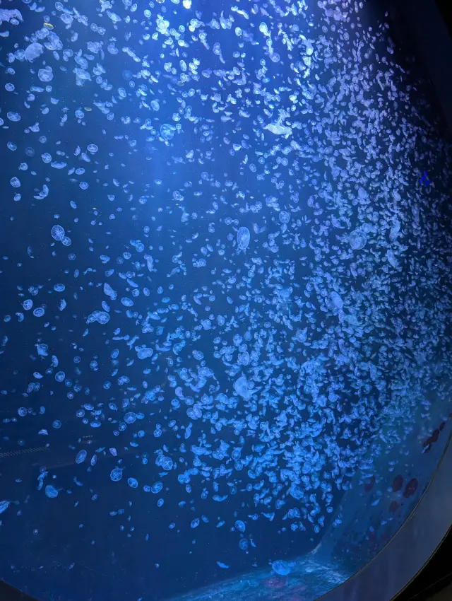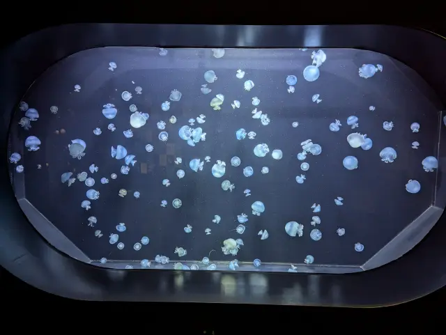 さまざまな種類のクラゲが展示されている