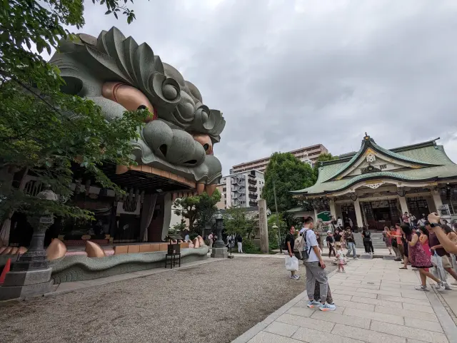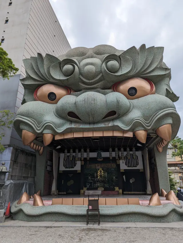 境内に足を踏み入れると目に飛び込んでくるのが、本殿の西側に建つ「獅子殿」。その名の通り外観が獅子頭の形をしており、大阪大空襲で焼失した本殿を再建する昭和49年(1974)に、「神社のシンボルとして大阪人が驚くものを」と古くからこの地域で盛んだった魔除けの獅子舞をモチーフに造営された。その大きさは高さ12m、幅11m、奥行き10mと相当なもので、東側の鳥居の外からもその姿を目にすることができる。勝負運がアップすると言われ、学業向上や合格祈願、商売繁盛といったご利益を求めて全国や海外からも参拝客が訪れる。