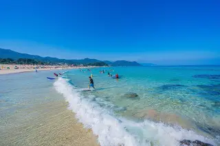 まるで夢みたいなビーチ!砂がすごく白くて細かくて、裸足で歩くと気持ちいいし、海の色も青くて透明感バツグン。どこで写真を撮っても映える。夏は人が多いけど、その分賑やかでリゾート感たっぷり。近くにお店やレストランもあるから、遊び疲れたらすぐにご飯も食べられて超便利。とにかく、のんびりしたい人や日光浴、海の景色を楽しみたい人にピッタリの場所!🌊☀️
