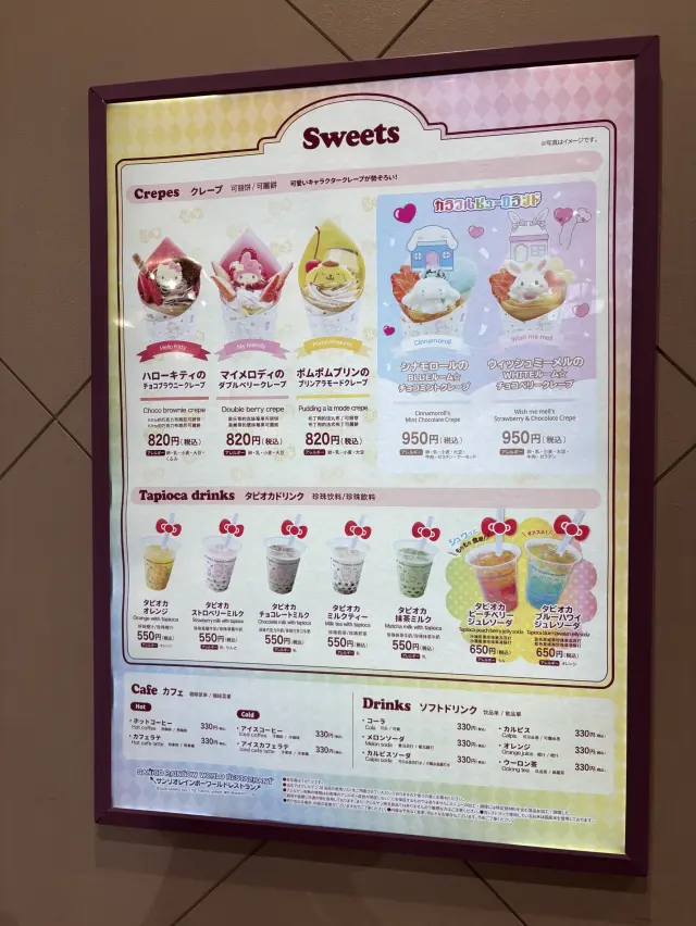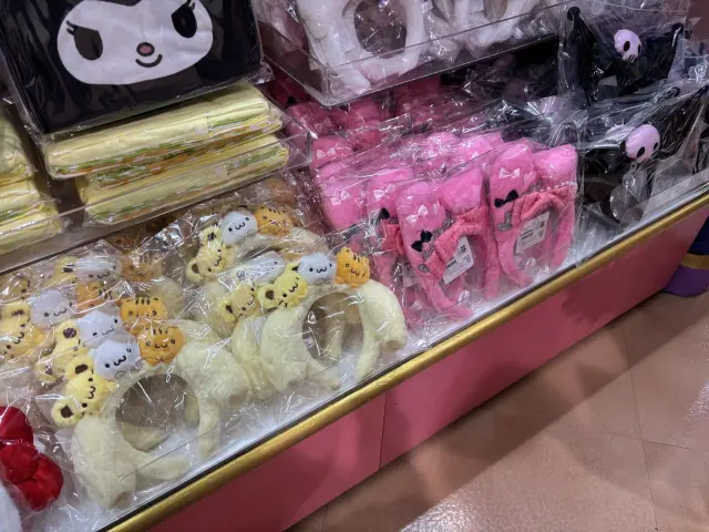 おみやげが可愛すぎて、入った瞬間に理性が飛ぶ…。どのキャラのグッズもそろってて、ハローキティもポムポムプリンもマイメロディも全部見つかる。品揃えも豊富で、キーホルダーみたいな小物からぬいぐるみみたいな大物まであって、うっかり爆買いしちゃう。