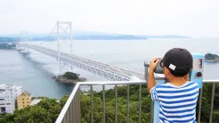 • 長くて急なエスカレーターに乗って展望台へ。上からは鳴門大橋や渦潮など、周囲の景色が一望できて最高!