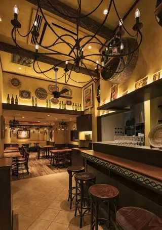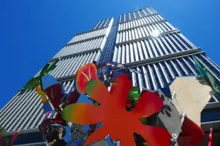 広場の可愛いフードトラックの飾り付けがとてもおしゃれで、バラの花が全体をエレガントに演出してる。ヨーロッパ風の建物も素敵!