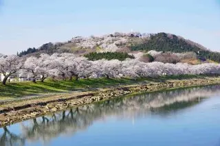 船岡城址公園は毎年桜の季節になると多くの人が訪れるお花見スポット。千本以上の桜が咲き誇り、川沿いから山の上まで満開の桜が続いていて、圧巻の美しさ!