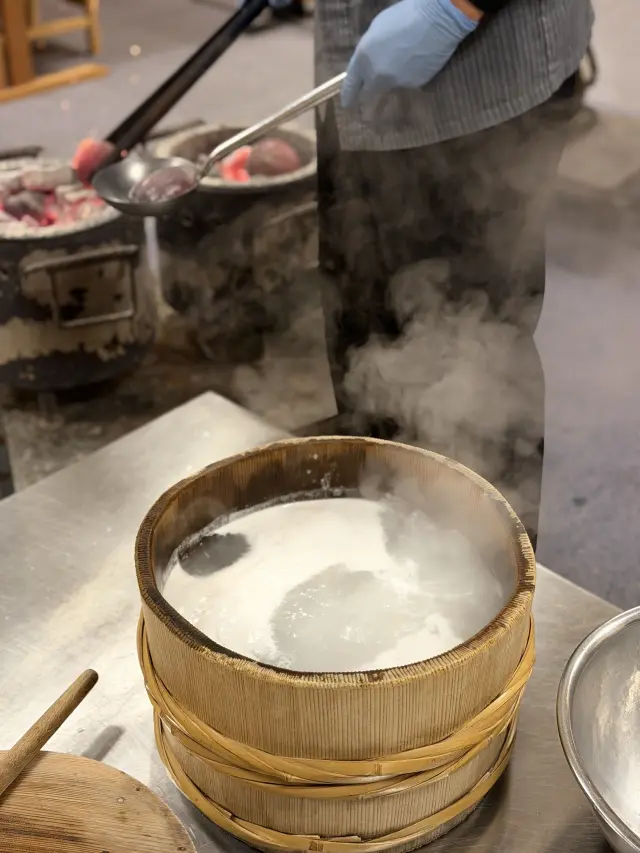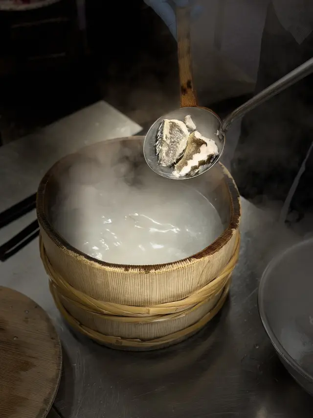 名物の石焼き料理の魚汁がとても新鮮で美味しい。職人さんの技も見事で、真っ赤に熱した石を何度も動かしているうちに、魚汁があっという間にできあがる。 -