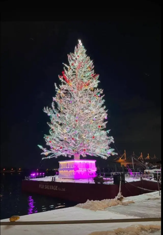 ไฟประดับกับวิวทะเลโรแมนติกสุดๆ แถวโกดัง Kanemori บรรยากาศดีมาก แต่ลมทะเลพัดมาทีหนาวมากจริงๆ 🥶 -