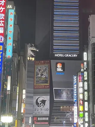 歌舞伎一番町除了有灯红酒绿的居酒屋之外,还有一处一定要去打卡的景点,那就是位在歌舞伎新宿町内的TOHO电影院,那里有巨大的哥斯拉模型,从1楼到8楼高的哥斯拉魄力十足。