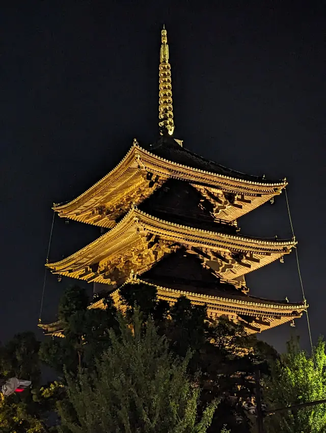 正式名称为「教王护国寺」,境内的「五重塔」被视为京都地标。东寺是于延历13年(794年)迁都平安京两年后,与西寺同时建造的寺院。西寺在平安时代末期荒废,东寺的建物历经多次烧毁后重建至今。寺内丰臣秀赖所建的金堂和德川家光兴建的五重塔皆被指定为国宝。