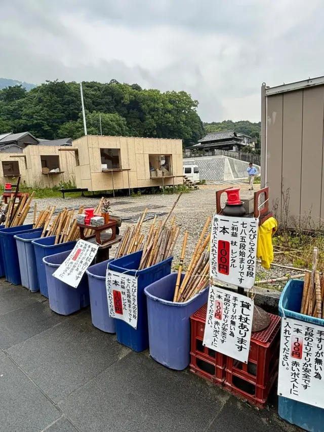 许多旅客会先在参道租赁手杖再登上石阶梯
