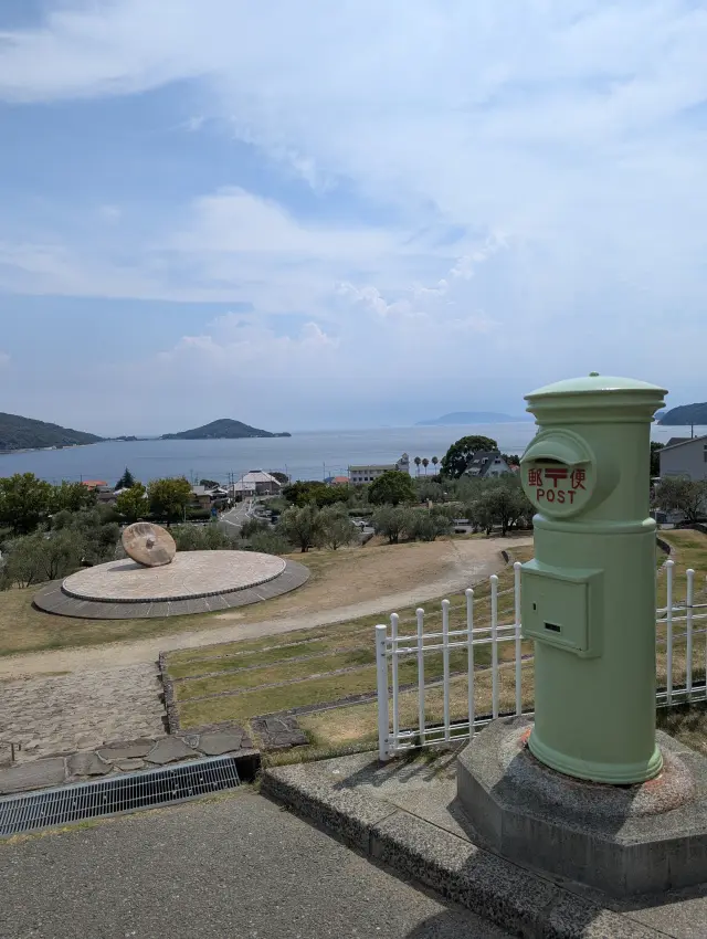 终于来到心心念念的小豆岛, 第一站就直奔橄榄公园, 在希腊风车前眺望濑户内海, 从橄榄色邮筒寄出幸福的明信片, 接着沿着橄榄树走访电影场景。