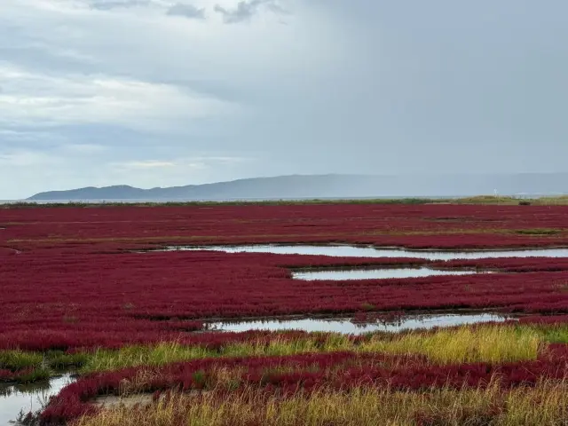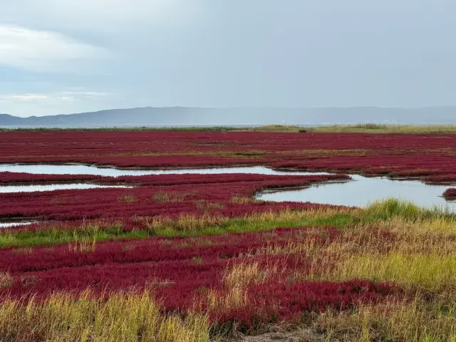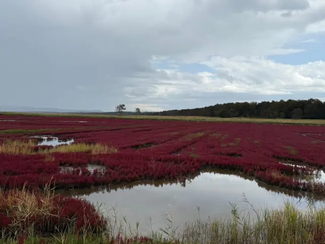 站在能取湖边, 风很凉, 湖面平静得像镜子。秋天整片珊瑚草变红, 看起来很特别, 气氛安静又舒服。