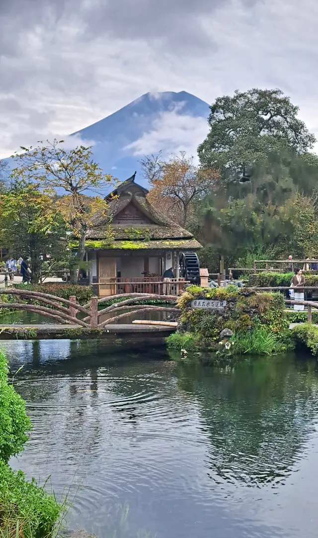 裡面賣的東西很好吃,邊吃邊欣賞湧泉美景以及富士山的美麗。