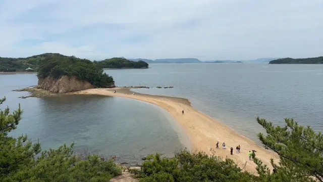位於小豆島西南部的「天使的散步道(天使之路)」,是一條在每天兩次退潮時從海中顯現、連結四座小島的沙灘小徑。相傳情侶牽手一起走過這條沙路,未來便能獲得幸福。加上這裡經常被用作電影與電視劇的拍攝場景,因此成為遊客絡繹不絕的人氣景點。