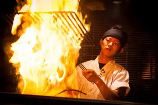 • 一邊看「稻草燒」料理方式,一邊享用美食,覺得很讚!