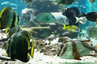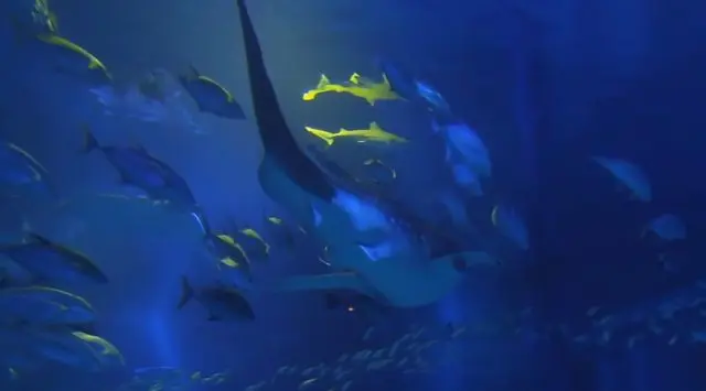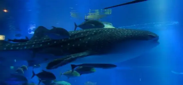 人潮非常多,魚缸很大裡面有許多海洋生物,還有好吃的鯨鯊冰淇淋。
