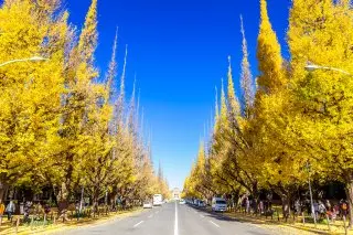 銀杏林道的美麗黃葉是相當迷人的風景。 -