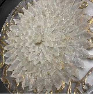 河豚沙西米吃起來口感彈牙很Q,味道絶美!