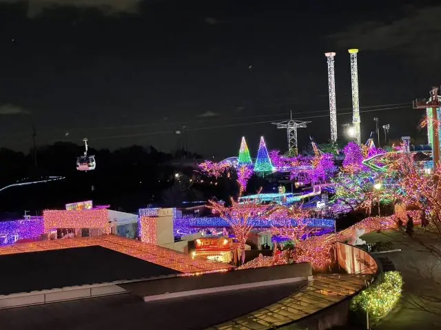 乘坐纜車在空中欣賞夜景真的太美了,燈光秀是這個樂園最大的特色。