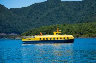 • 水質很乾淨很清澈,透過船底的玻璃可以看到鱒魚等海底生物,是另一種搭船遊湖不同的感覺。