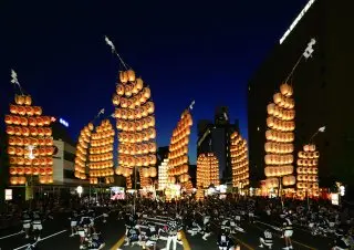 • 晚上燈籠全部點亮時,整條街變成一片金色稻穗海,真的超壯觀,很有秋田農業文化的象徵感。