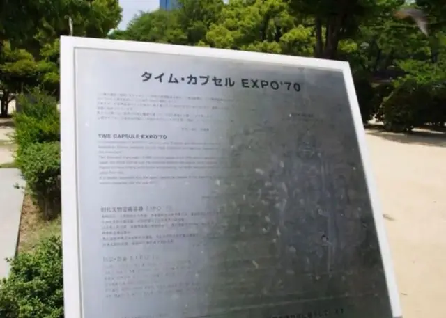 大阪城公園內有個防火防炸超時空膠囊,把我們現代人所使用的流行物品模型擺在裡面,有一天人類滅絕後,後人就可以知道我們現代文明的發展,還蠻有意義的。