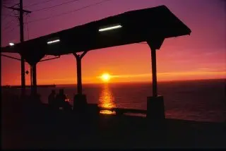 日本最靠近海的無人車站搭配上無敵海景,金黃色黃昏海面欣賞日落,我醉了⋯⋯