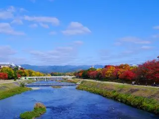 京都的夏天真的很熱,傍晚時刻坐在河邊涼床上吃東西涼爽微風吹來相當舒服。