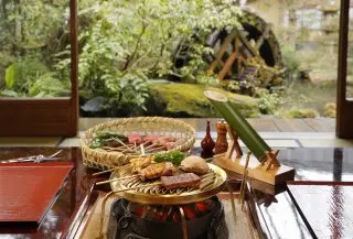 充滿日本風情的料亭~還有歷史感十足的合掌屋~可以品嚐炭火現烤的雞肉與和牛串燒料理哦。