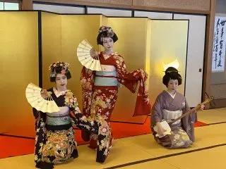 秋田文化產業設施松下」在大宴會場還能欣賞到秋田舞妓的表演哦很棒啊