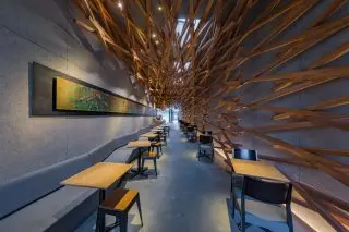 在外面拍照實在太可惜了,是日本木作玩具Cidori創作靈感,用2千根木條延伸至店內最後的園景,深空間更為迷人