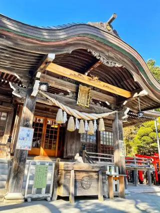 神社內有~提供非常有特色的釣烏賊抽籤哦,還可以向神兔求籤哦