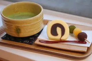眺望溫泉本館風景的時,慢慢享用一六蛋糕捲哦