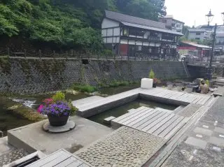 足湯於2001年竣工,地處流經溫泉街中心地帶👍
