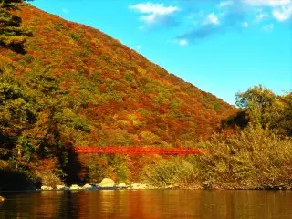 紅葉與藍色溪流~美景讓人將疲憊通通拋在腦後哦~