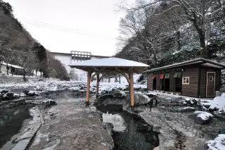 湯原最大賣點就係露天混浴溫泉『砂湯』,免費兼有山景,型到癲。