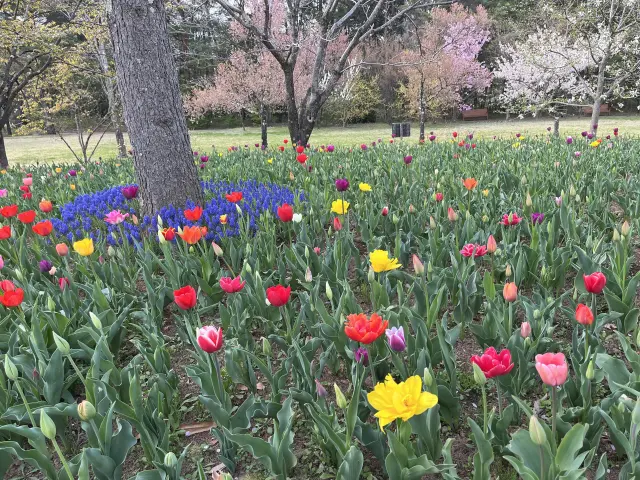 長野縣安曇野市的安曇野的國營公園,可以欣賞鬱金香、鈴蘭、櫻花⋯⋯等,百花綻放的賞花名勝。